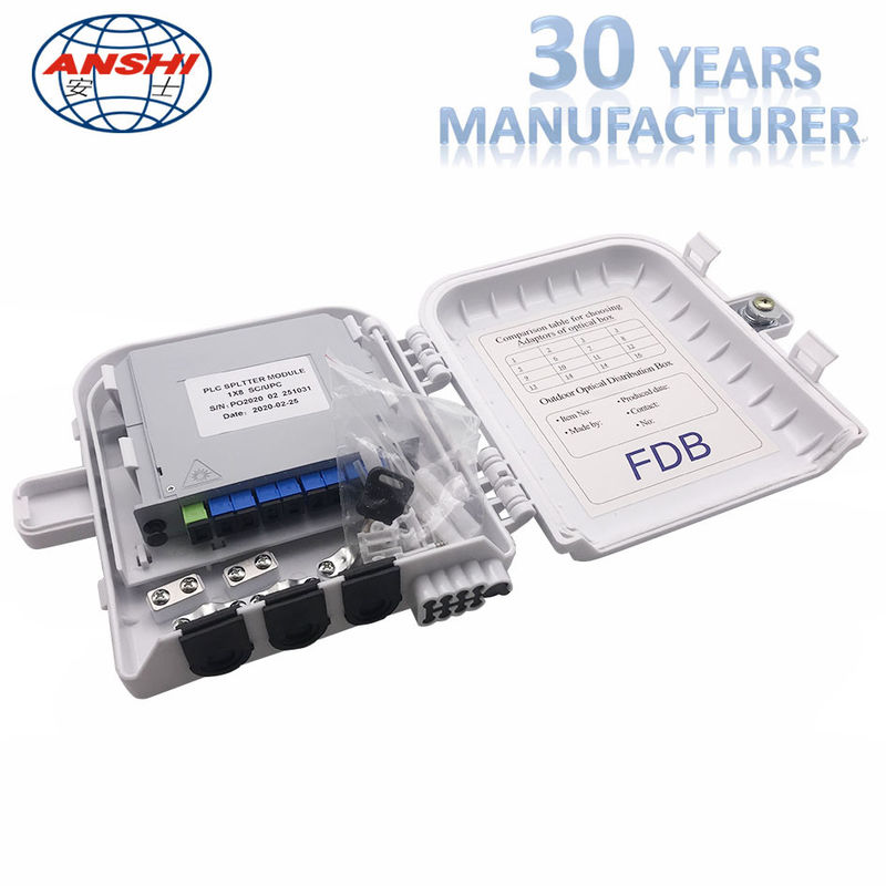 8 core Wall Mount Fiber Distribution Box with PLC splitter waterproof outdoor FAT Box