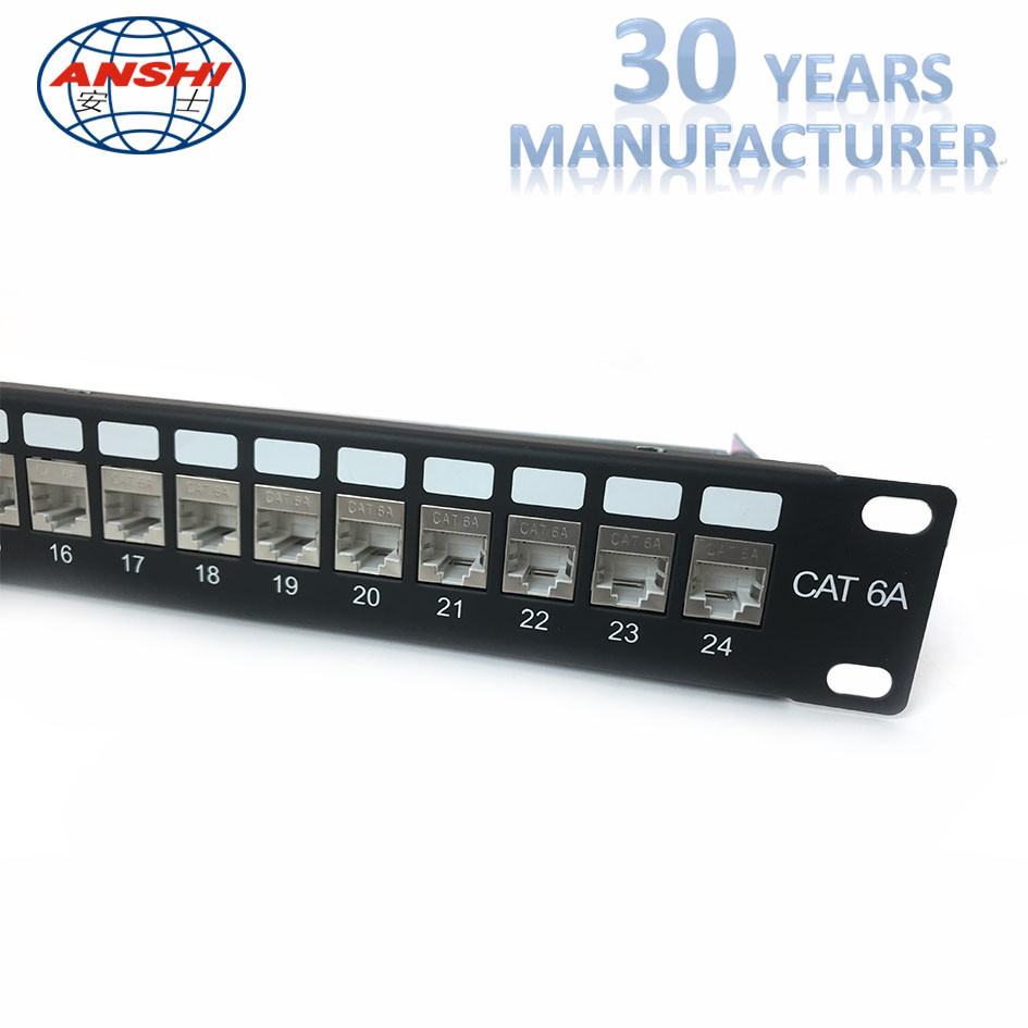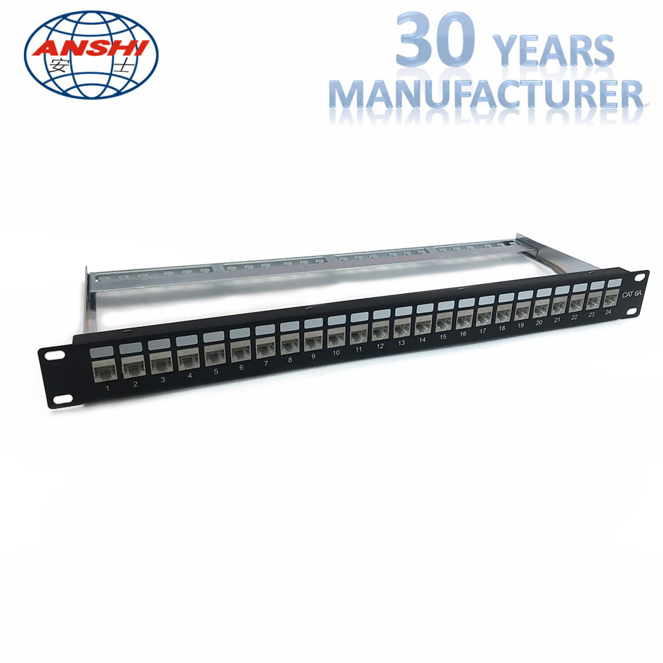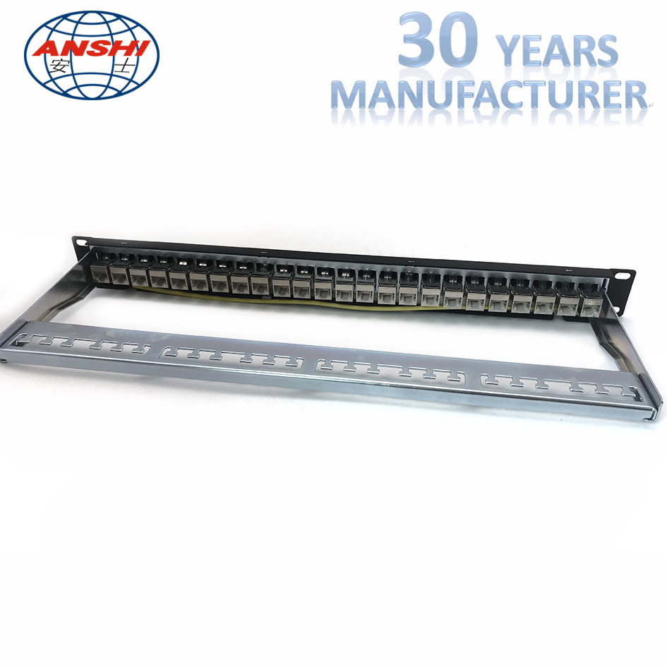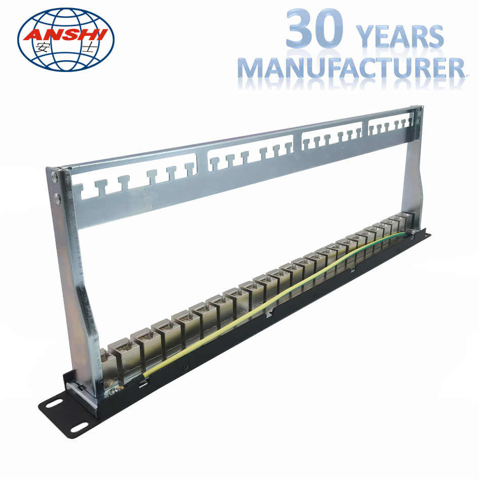 ANSHI 19 Inch 1U 24 Ports CAT6A STP Patch Panel