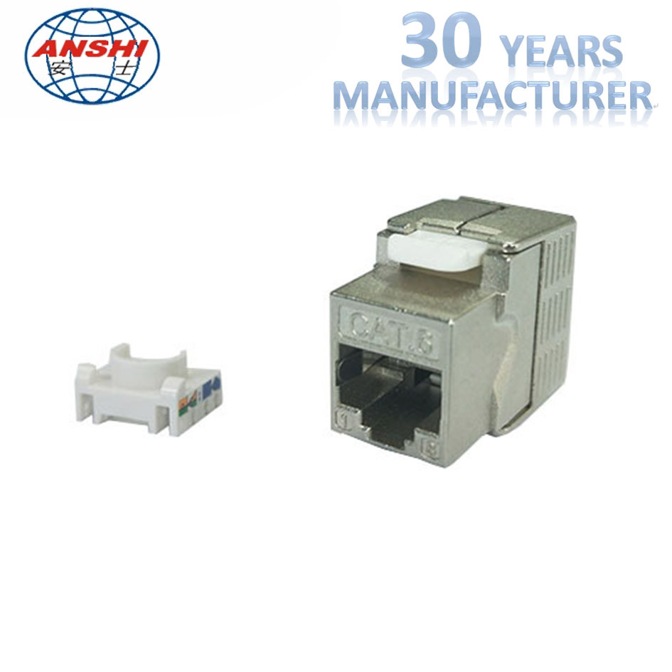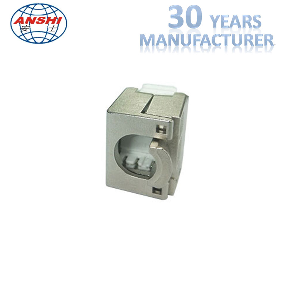 ANSHI CAT5E CAT6 CAT6A CAT7 RJ45 180 degree Toolless Shielded STP Zinc Alloy Keystone Jack