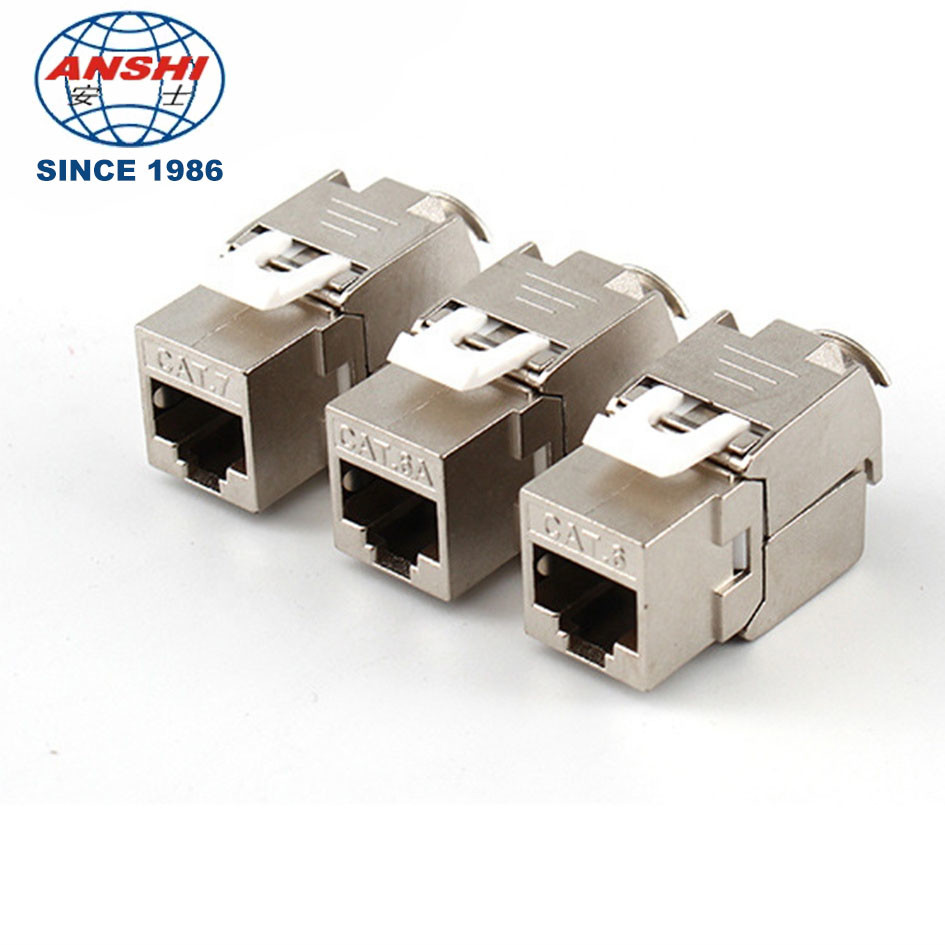 ANSHI Cat5e CAT6 CAT6A CAT7 RJ45 180 degree Toolless Shielded STP Zinc Alloy Keystone Jack