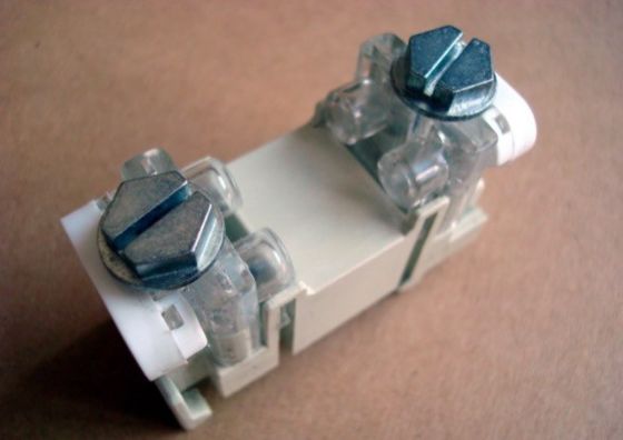 The module of connection is established beyond the longitudinal tire, made from the stainless steel, which corresponds to standard DIN. Module can be established beside different types of housings, before different quantities. Compactness ensures the small size of base to article (with width only of 2 cm).
